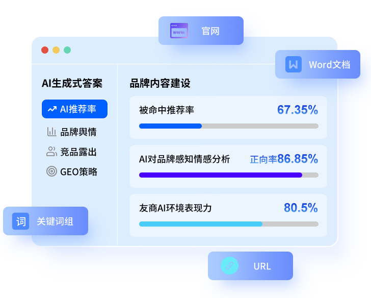 实时监测AI引用率,FQA内容推荐关键词,生成可视化报表